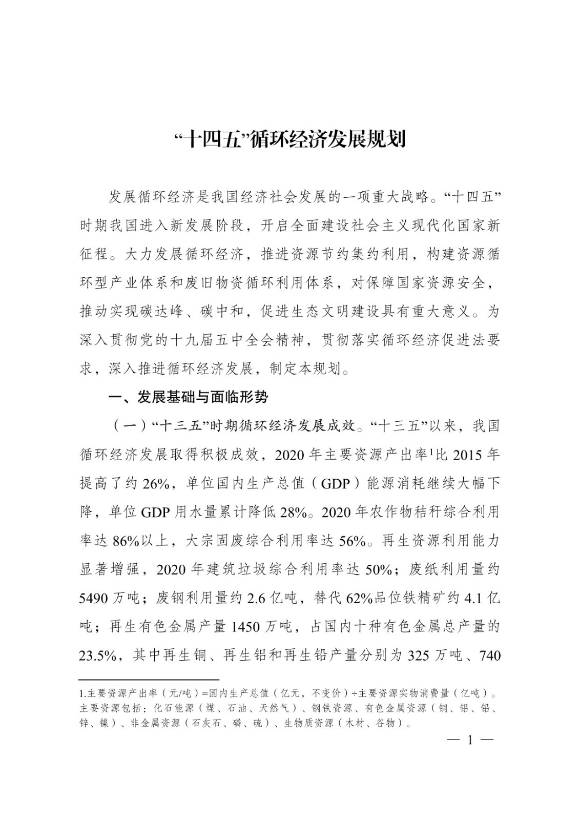 《“十四五”循环经济发展规划》